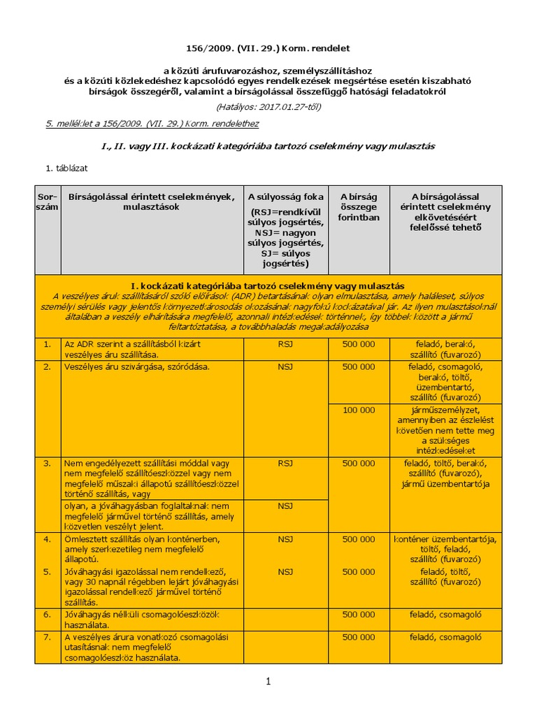 156 2009 vii 29 korm rendelet. Magyar joganyagok 156 2009. Rendelet a közúti árufuvarozáshoz személyszállításhoz és a közúti közlekedéshez kapcsolódó egyes rendelkezések megsértése esetén kiszabható bírságok összegéro l valamint a bírságolással ös h 1 1 megállapította. Rendelet a közúti árufuvarozáshoz személyszállításhoz és a közúti közlekedéshez kapcsolódó egyes rendelkezések megsértése esetén kiszabható bírságok összegéről valamint a bírságolással összefüggő hatósági feladatokról. Magyar joganyagok 156 2009.