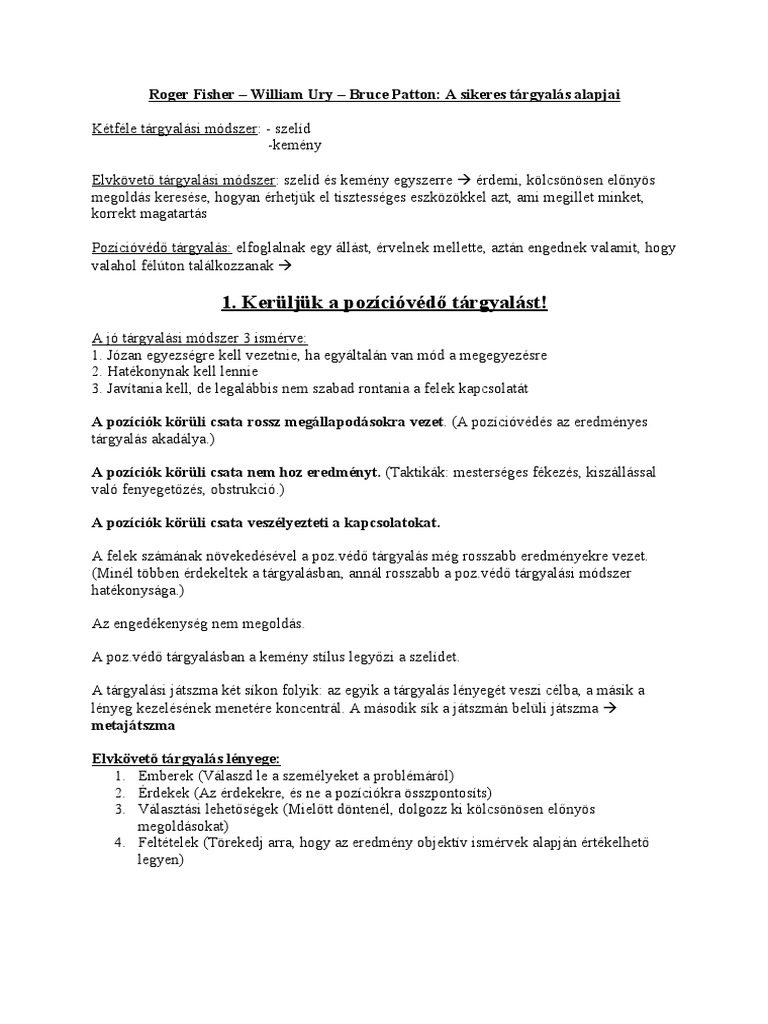 Elfoglalnak egy llst rvelnek mellette aztn engednek valamit hogy valahol fl ton tallkozzanak. A tárgyalás sikeressége a tárgyalótól jobban függ mint a témától. Szeld s kemny egyszerre rdemi klcsnsen elnys megolds keresse hogyan rhet k el tisztessges eszkzkkel azt ami megillet minket korrekt magatarts ozcivd trgyals. Roger fisher william ury bruce patton.