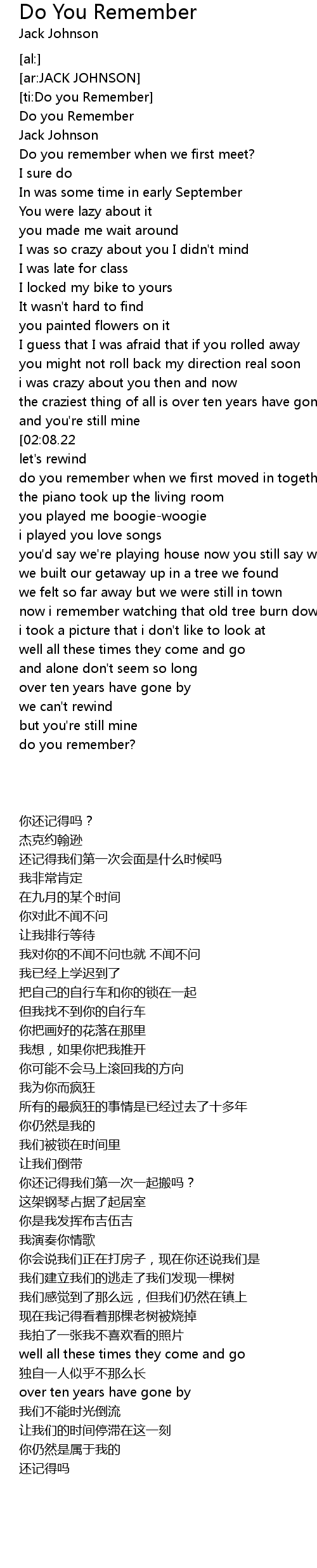 Do you remember lyrics. But you keep on telling me those lies do you remember. We built our getaway up in a tree we found we felt so far away but we were still in town now i remember watching that old tree burn down. Hey jay sean sean paul yeah lil jon this one right here is for all the ladies ladies who want to take it back holler at them jay i ve b. Do you remember when we first moved in together.
