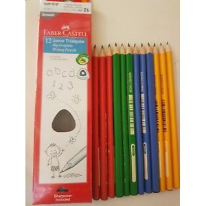 For its own pencil production faber castell only uses wood from sustainably managed forests. A special bonding makes the lead break resistant. Name space provided on each pencil. Their thick triangular shape fits snugly into little hands to help in early grip development.