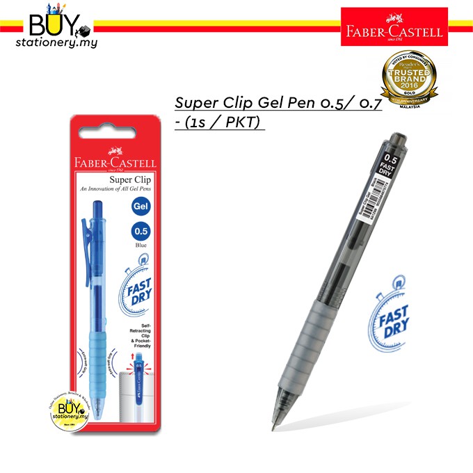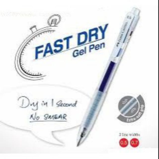 Faber castell quick dry gel pen. Specially formulated with vibrant gel ink which is quick drying does not smear and water resistant designed with stylish transparent clip cap available ink colours. Specification fast dry ink extra soft grip retractable smooth writing. This pen comes with a myriad of features which are very beneficial to all users. Be the first to review this product customers who bought this product also purchased.