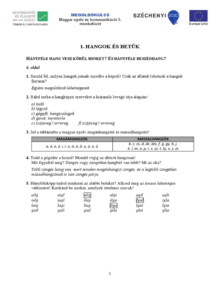 Megoldókulcs a magyar nyelv és kommunikáció 10. Keresd meg az alábbi szövegben azokat a szavakat amelyekben kiejtéskor érvényesül a hasonulás törvénye. Az összehasonlításnál a szövegekből vett idézetekkel bizonyítsanak a tanulók. Munkafüzet 1 megoldókulcs a magyar nyelv és kommunikáció 9.