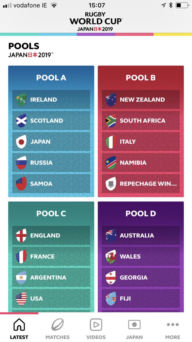 The pool included title holders new zealand and third placed team from 2015 south africa while italy also joined the pool after finishing third in their pool in 2015. View the latest news and pools for the rugby world cup 2019 including australia new zealand south africa england ireland france at fox sports. The pool included hosts japan and previous 2015 rugby world cup quarter finalists ireland and scotland they were joined by the european qualifier russia and samoa the winner of the european oceania cross regional play off.