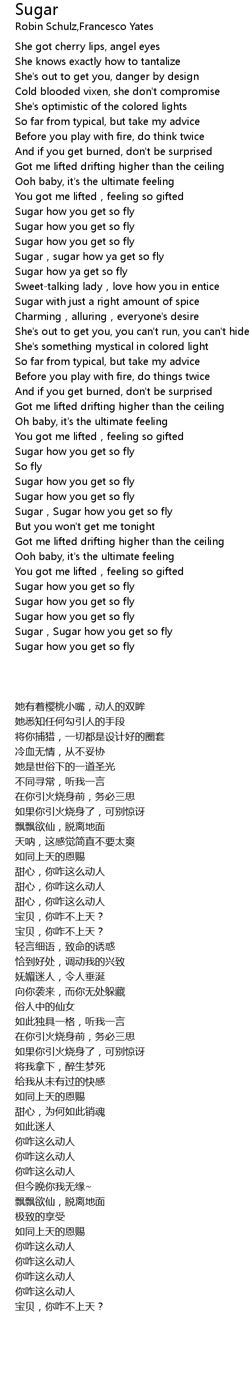 Sugar how you get so fly. Sugar how you get so fly. Sugar how you get so fly. Chorus am em got me lifted drifted higher than the ceiling c d am and ooh baby it s the ultimate feeling am em you got me lifted feeling so gifted c d am sugar how you get so fly.