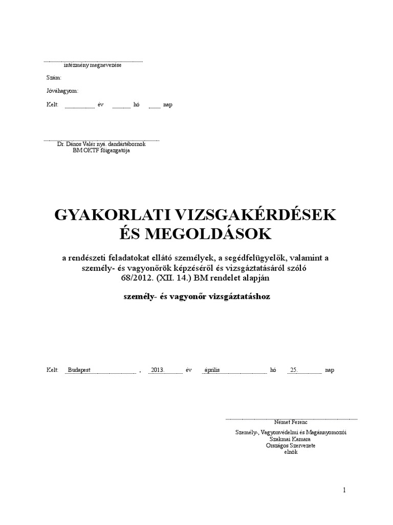 Személy és vagyonőr gyakorlati vizsgakérdések. Parkolás ellenőrzést végez biztosítja a rendezvény megközelítési és távozási útvonalait ellenőrzi a részvételi jogosultságot a rendezvényen megakadályozza a tiltott tárgyak bevitelét. Személy és vagyonőr gyakorlati vizsgakérdések és megoldások 2013 04 24 eredeti pdf pdf megtekintés letöltés 160 kb. Aki az új okj 32 861 01 személy és vagyonőr szakképesítéssel rendelkezik függetlenül hogy kapott vagy nem kapott erről mentességi okiratot a szakképesítés megszerzésétől 5 éven belül. Cikk től a xxix.