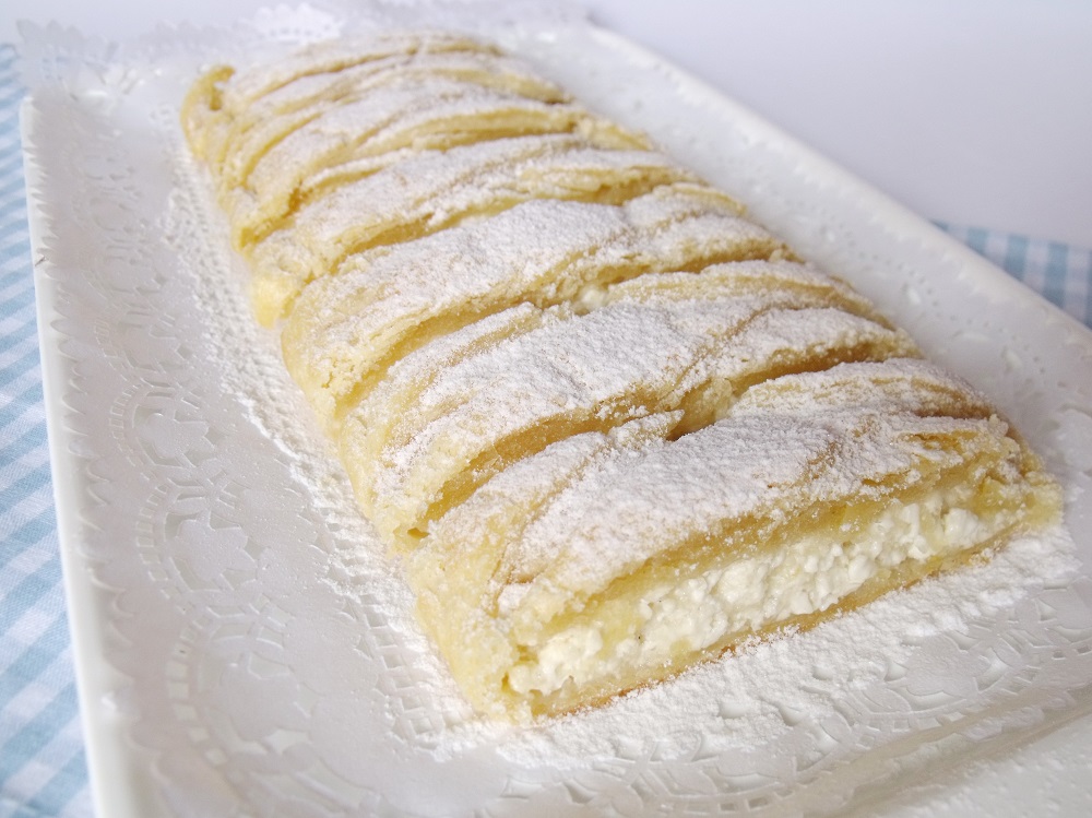 Túrós rétes leveles tésztából. A tésztát kitekerjük és a hosszabbik oldalának egyik felére rákenjük a túrós tölteléket. Gyors túrós rétes receptek a mindmegette. Anyósom miatt sütöttem mert szereti a túrós sütiket és ebéd utánra ez volt a leggyorsabb.
